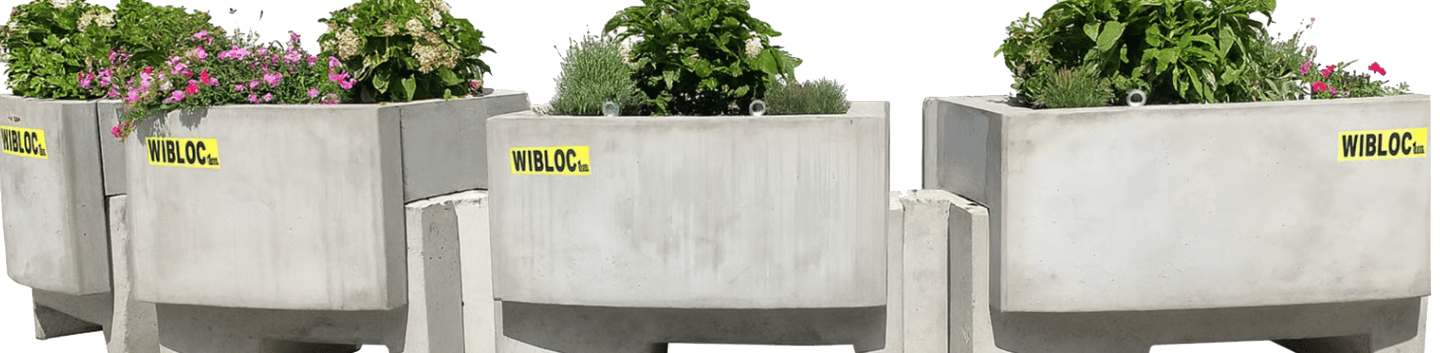 Daarnaast leveren we bloembakken die eenvoudig bovenop de Wiblocs geplaatst kunnen worden, of – indien gewenst – op een paniekblok. In dat laatste geval is de bloembak even hoog als de aangrenzende blokken, zodat een egaal geheel ontstaat. De bloembakken vergroten niet alleen het totale gewicht, wat de stabiliteit van de constructie verhoogt, maar geven ook een vriendelijkere en aantrekkelijkere uitstraling. Het groen verzacht het robuuste of industriële karakter van de installatie, waardoor deze harmonieuzer opgaat in het straatbeeld, zonder dat de functionele eigenschappen verloren gaan.
