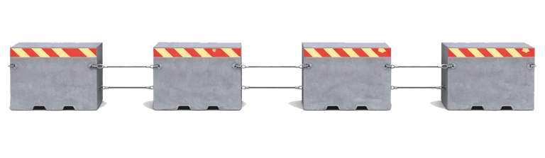 Het Wibloc KabelLink-systeem zorgt ervoor dat alle blokken samen één sterk geheel vormen. Het gecombineerde gewicht verhoogt de weerstand bij impact