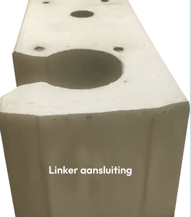 In bepaalde situaties kan het praktischer zijn om Wibloc-elementen zijdelings met elkaar te verbinden in plaats van via de standaard aansluiting aan de kopse kant. Dit kan bijvoorbeeld het geval zijn wanneer de beschikbare ruimte beperkt is, wanneer een specifieke doorgang vrijgehouden moet worden, of wanneer de situatie ter plaatse een alternatieve plaatsing vereist. Om maximale flexibiliteit te garanderen, bieden wij Wibloc-elementen aan met zowel een linker- als een rechteraansluiting. Zo kan voor elke opstelling – of deze nu recht, in een bocht, of in een complexe indeling wordt geplaatst – altijd de meest efficiënte en veilige verbinding worden gerealiseerd.